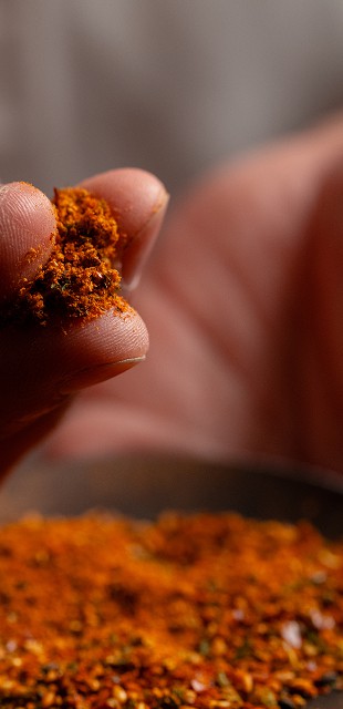 七種の野菜に、ローストアーモンド、クミン、コリアンダー、ごまをブレンド。オリエンタルな香りに、うま味と香ばしさを感じるスパイスです。
